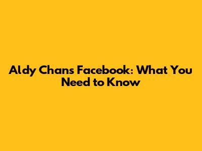 Aldy Chan's Facebook: What You Need To Know