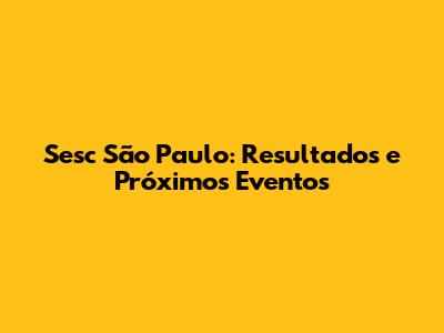 Sesc São Paulo: Resultados E Próximos Eventos