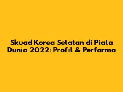 Skuad Korea Selatan Di Piala Dunia 2022: Profil & Performa