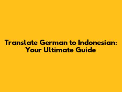 Translate German To Indonesian: Your Ultimate Guide